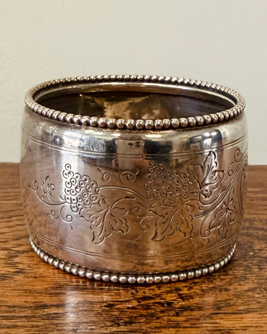 Grote verzilverde servetring met druiventros decor – Ø 5,5 cm