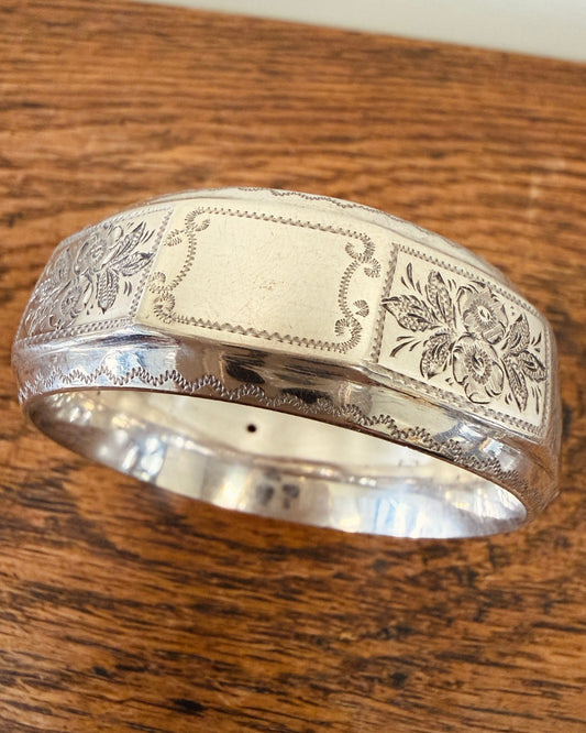 Verzilverde servetring met gravure en cartouche – Ø 5 cm