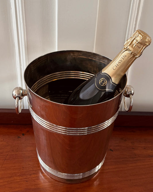 Vintage verzilverde champagnekoeler met ringgrepen