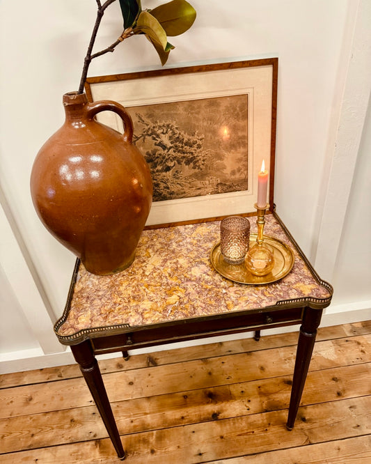 Elegant antiek bijzettafeltje met marmeren blad en messing details