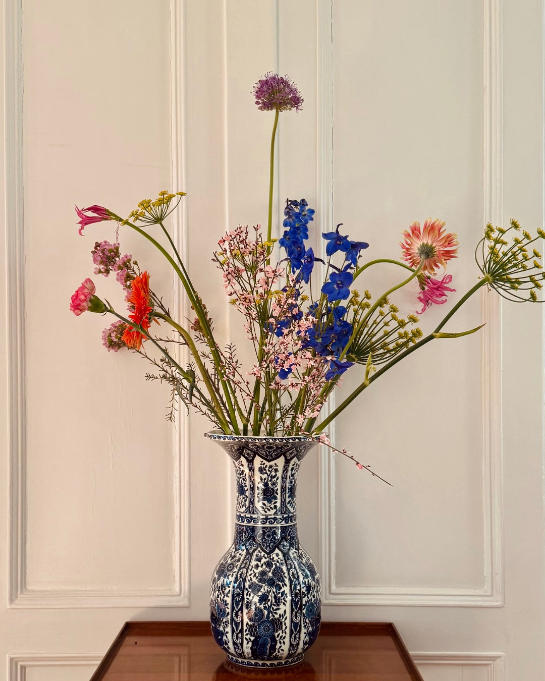 Prachtige grote kraagvaas van Boch voor Royal Sphinx. Het diepblauw in de vaas combineert heel mooi met een felgekleurd voorjaarsboeket. Ook leuk met kunstbloemen!