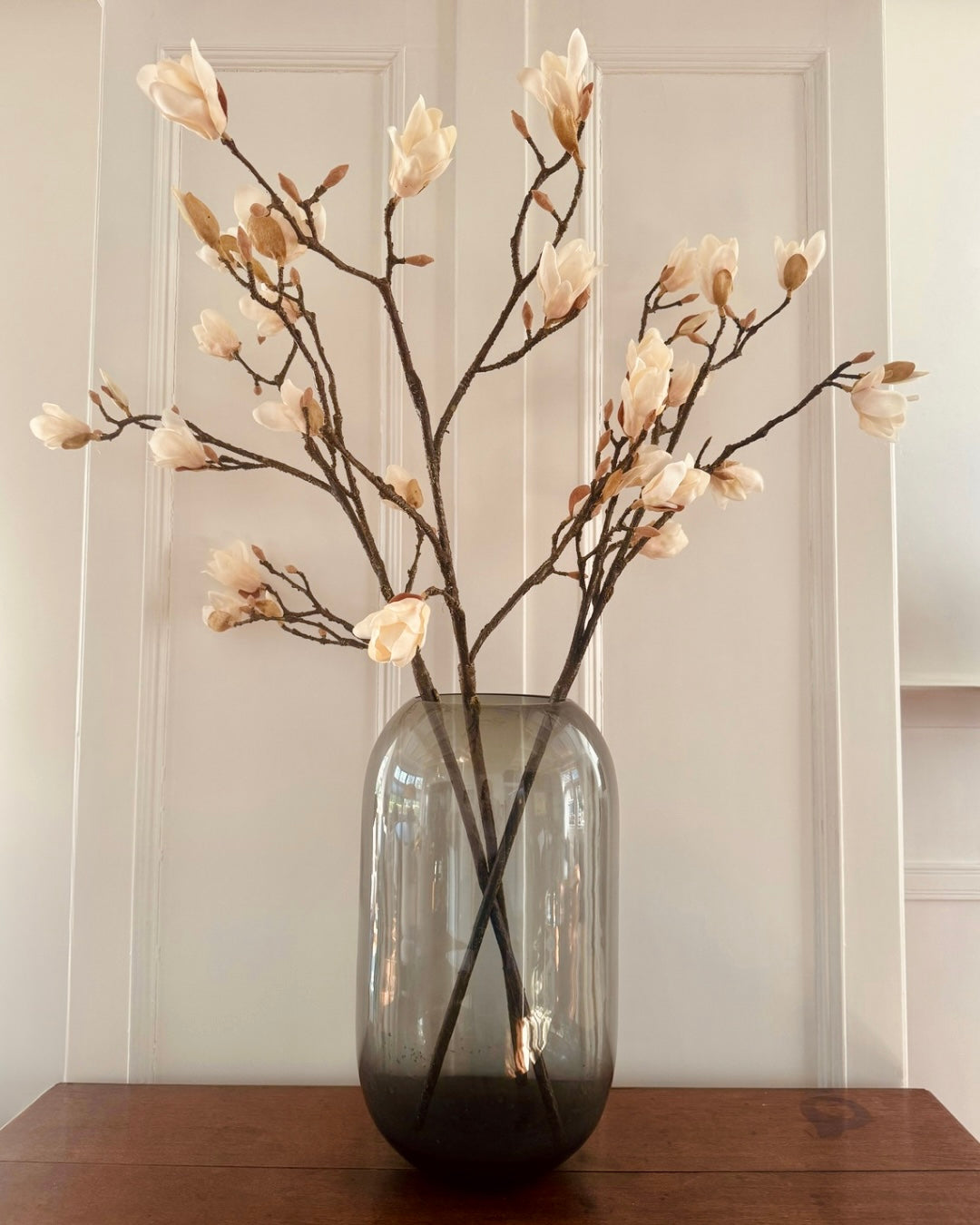 Strak, stijlvol en tijdloos: deze grote glazen vaas in rookgrijs glas is een echte blikvanger in huis. De zachte ronding en diepe kleur geven een moderne touch, terwijl het minimalistische design moeiteloos past in verschillende interieurstijlen. Prachtig met een paar takken (zoals magnolia of eucalyptus), maar ook zonder vulling is deze vaas al decoratief op zich.