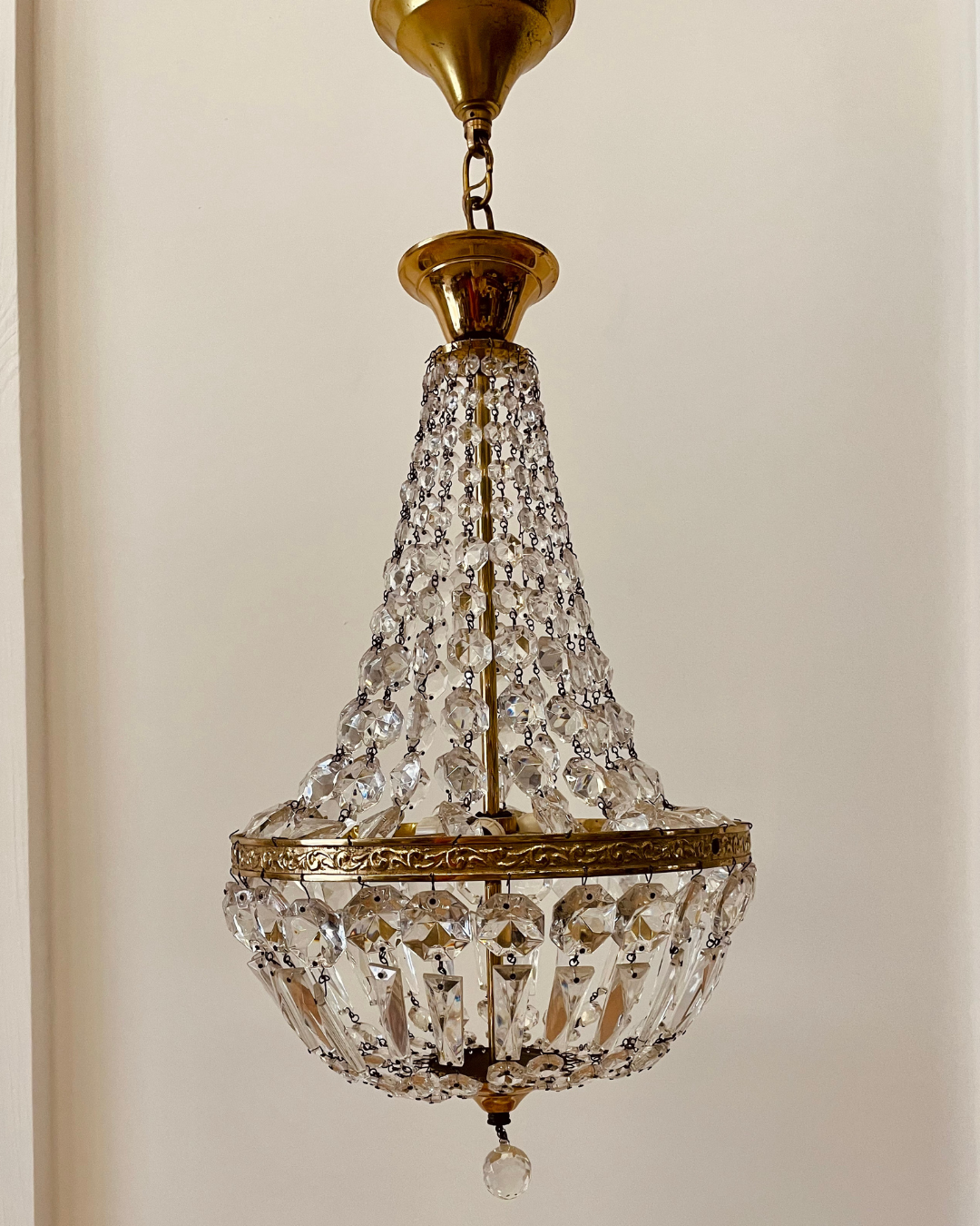 Mooie zakkroonluchter met een tijdloze vorm. Mooie hal- of slaapkamer lamp!